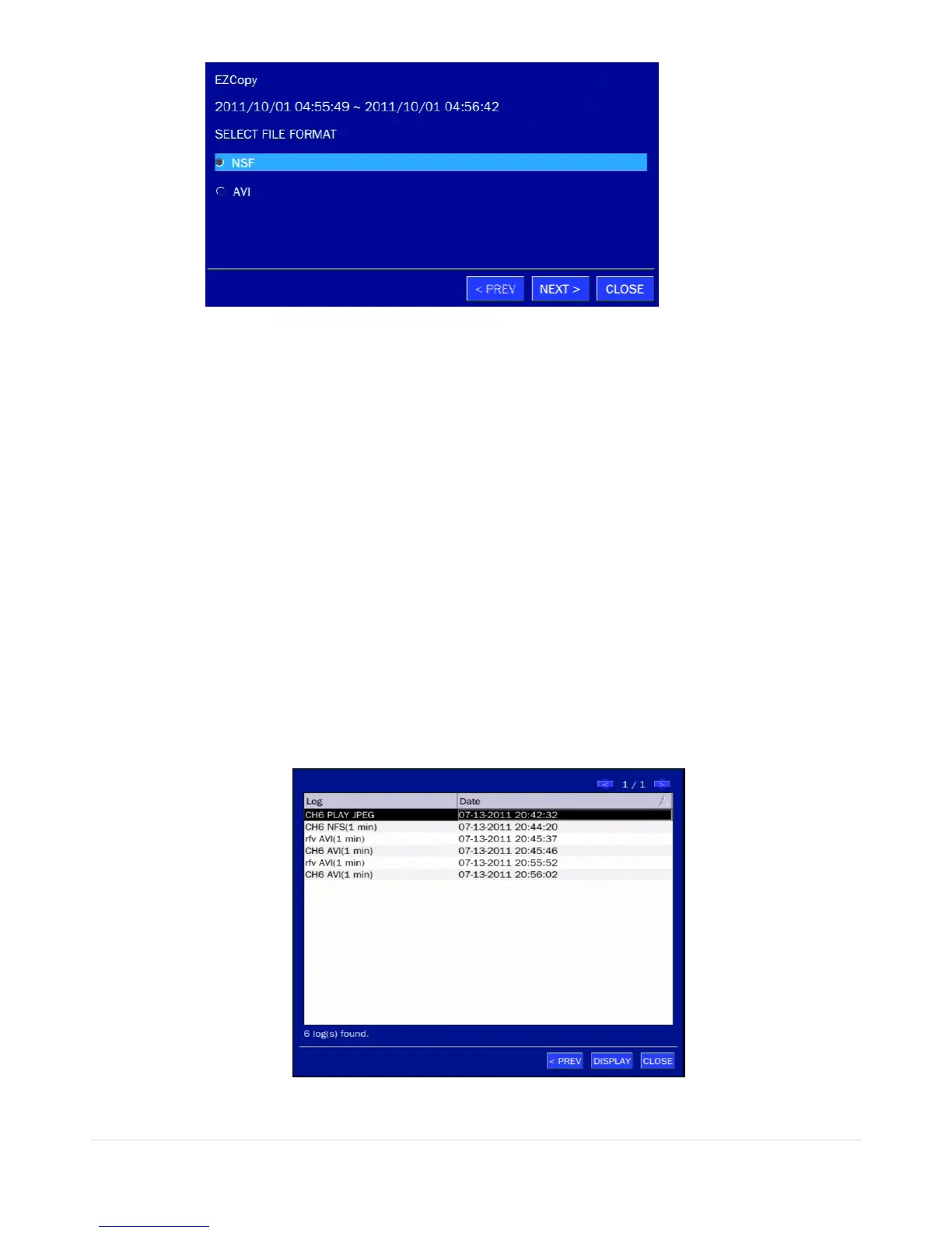 5. Once the desired event has been selected, press the DISPLAY button to view the still image or the first
