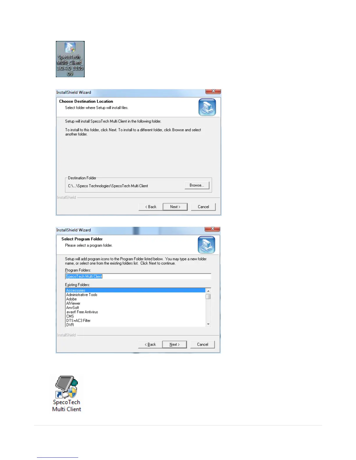 1. Insert the provided CD in the CD drive and double-click “SpecoTech Multi Client (XXXX).exe”