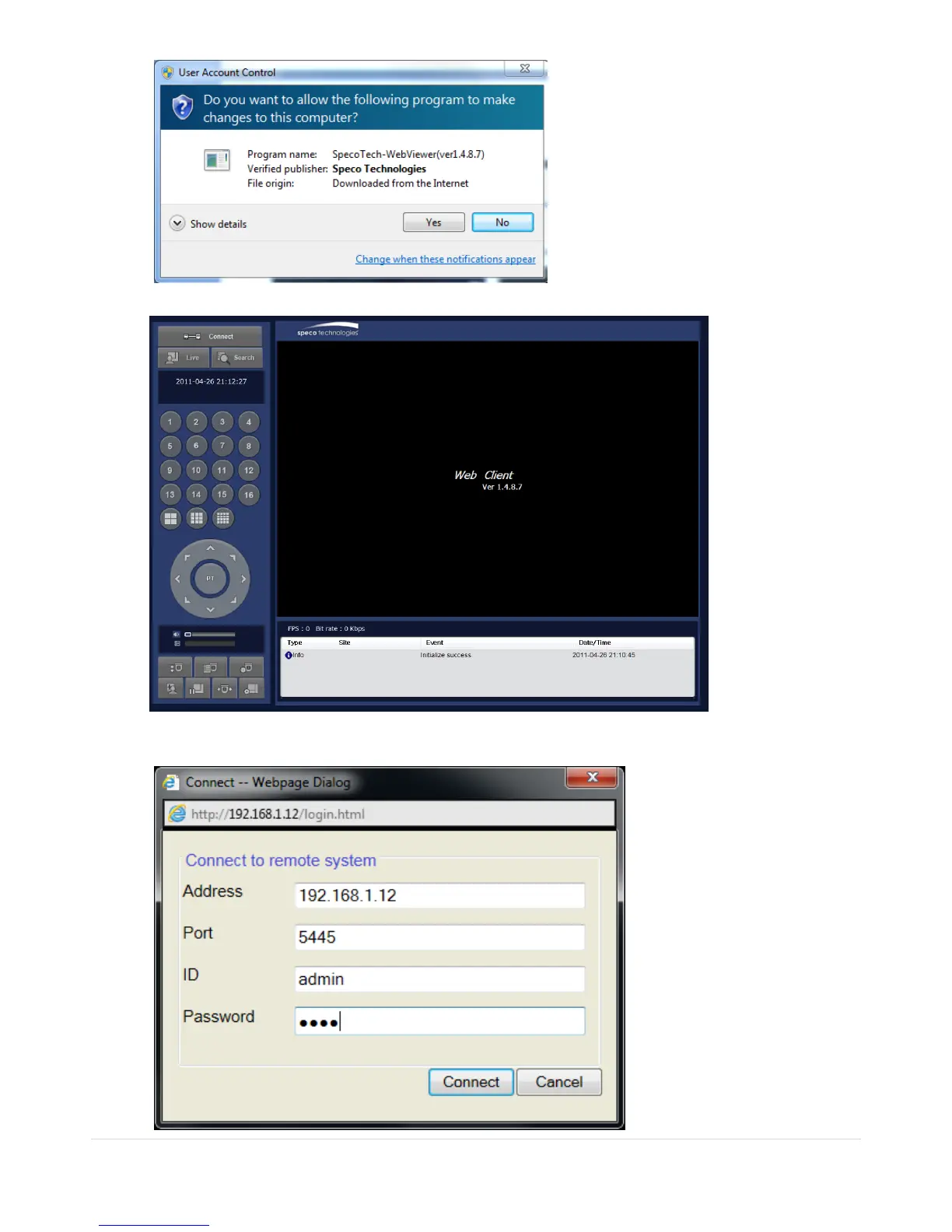 6. Click the CONNECT button on the Left upper corner of web-viewer. Then “Connect” dialog is
