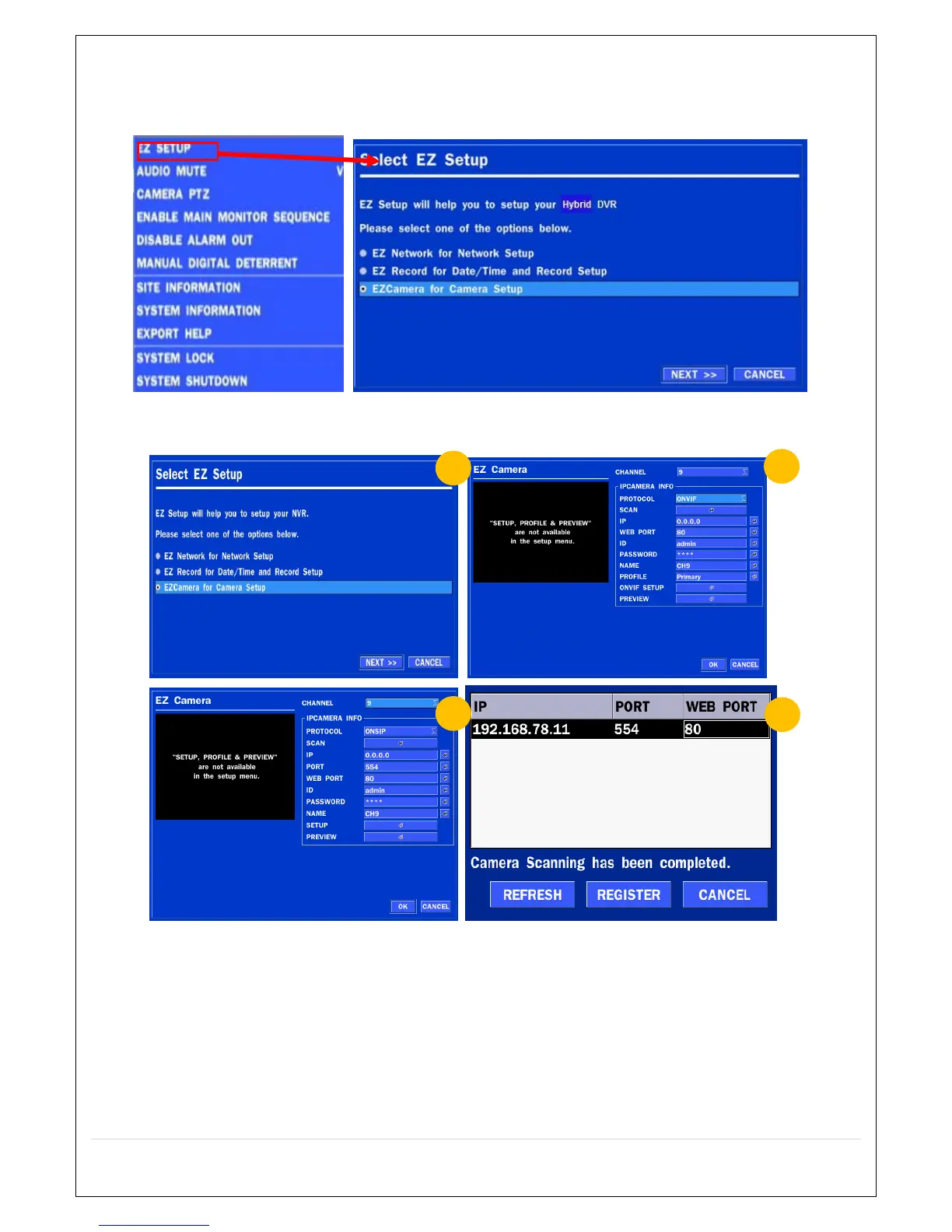 ① Select EZ Camera for Date/Time and Camera Setup, Click NEXT to proceed.