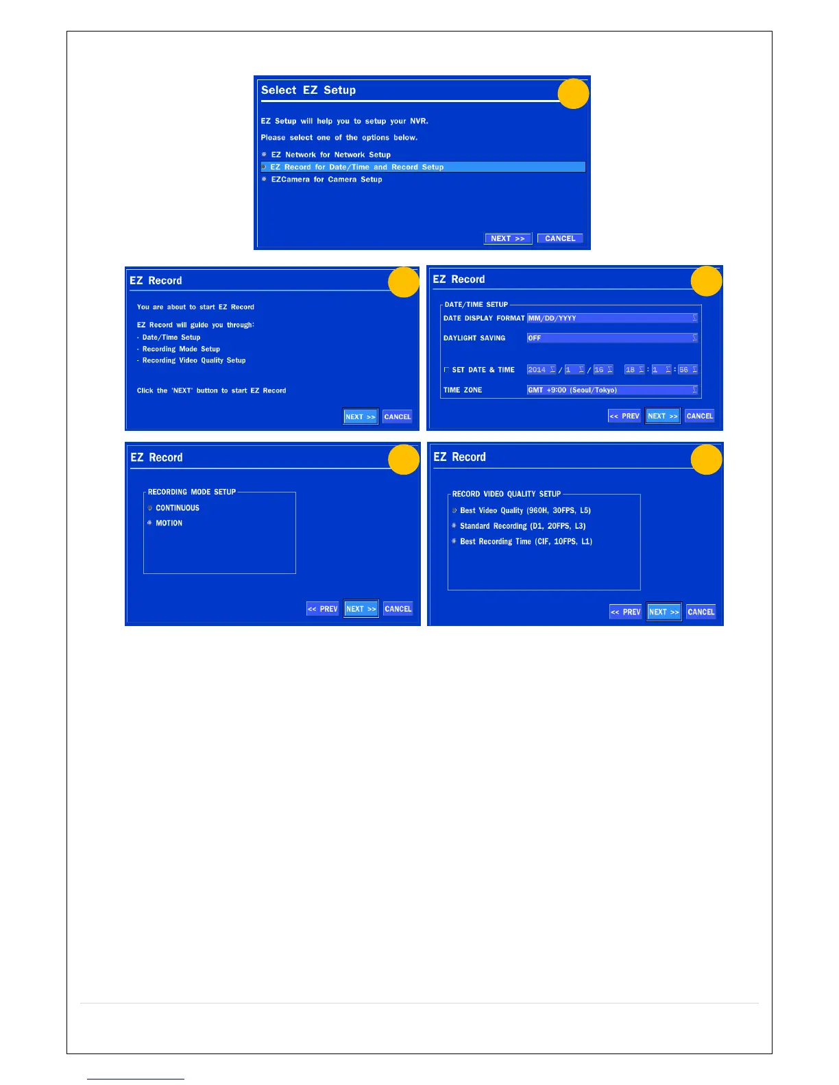 ① Select EZ Record for Date/Time and Record Setup, Click NEXT to proceed.