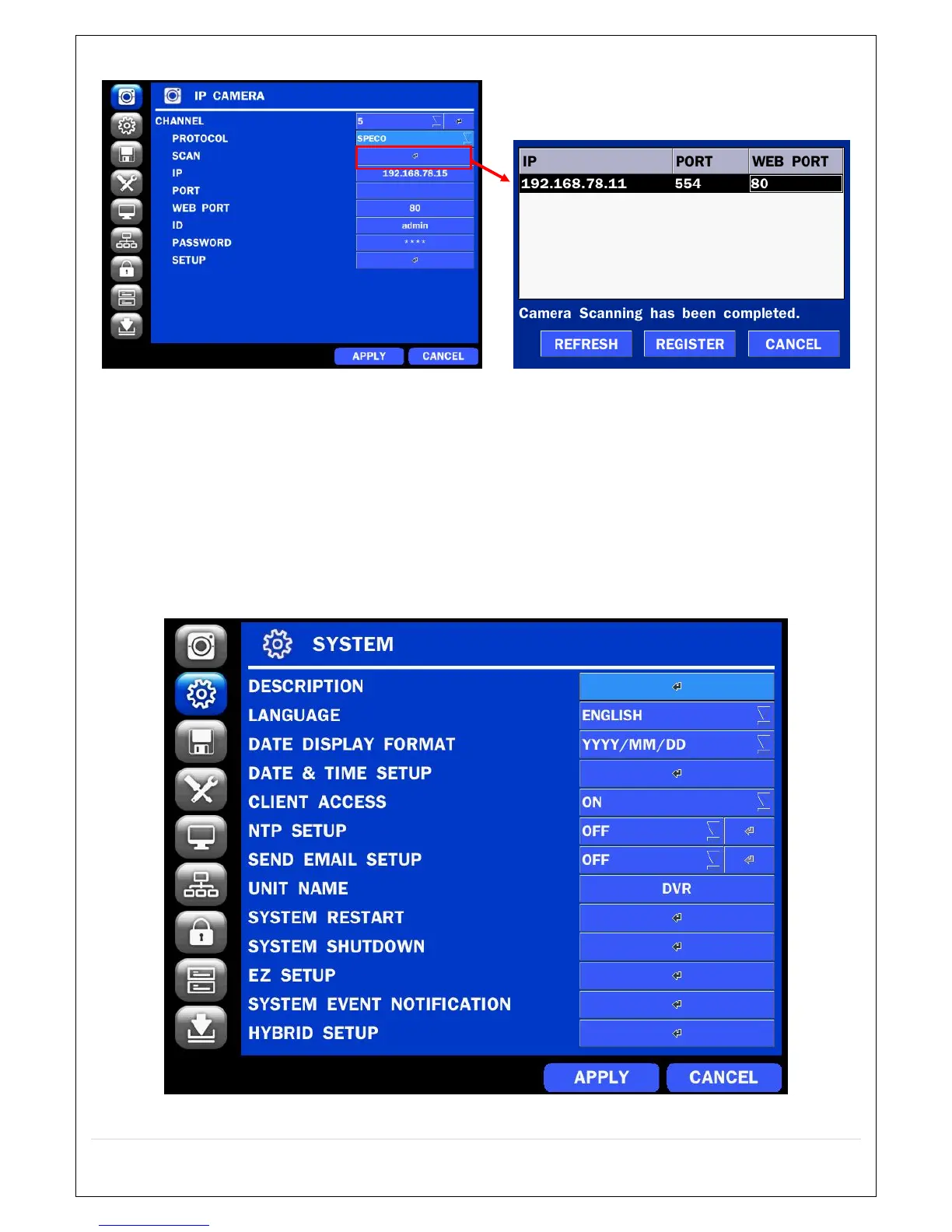 Figure 4.1.2 IP CAMERA Setup Screen Figure 4.1.3 Search IP Camera Screen