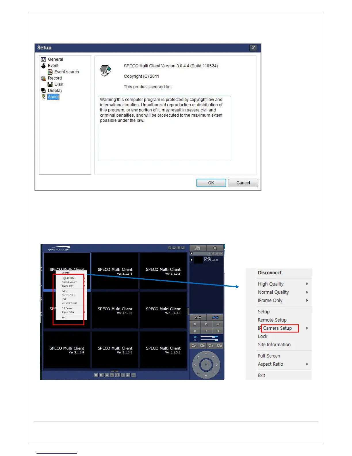 Then the setup window is displayed. The specified menu screen is displayed on the upper left of the screen.