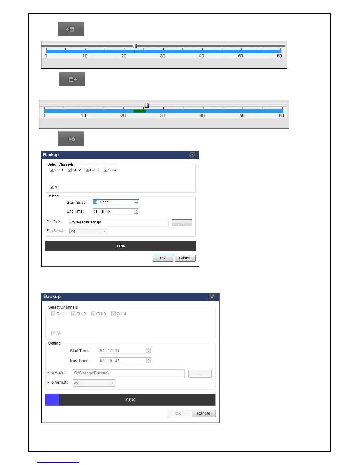 6. You can also set the beginning time and ending time on this window. After selecting a channel for backup,