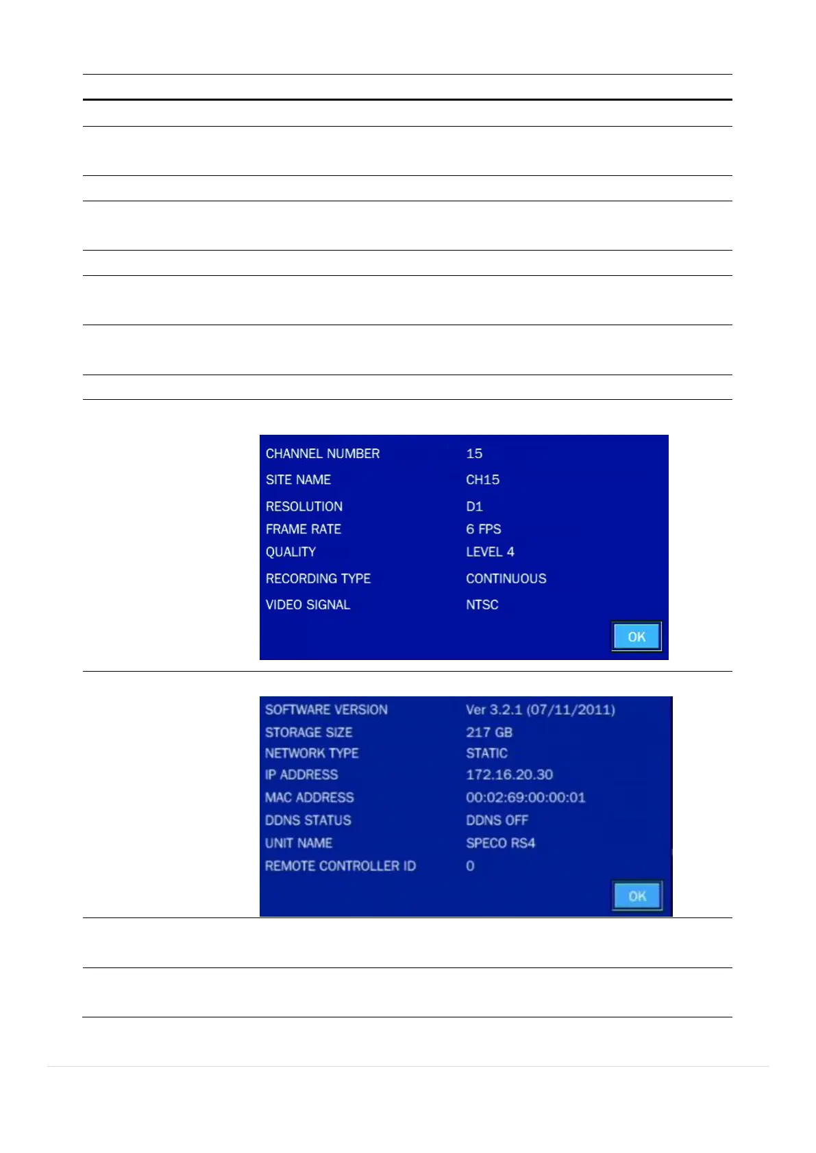 (Channel 1 through 4, Audio Mute).