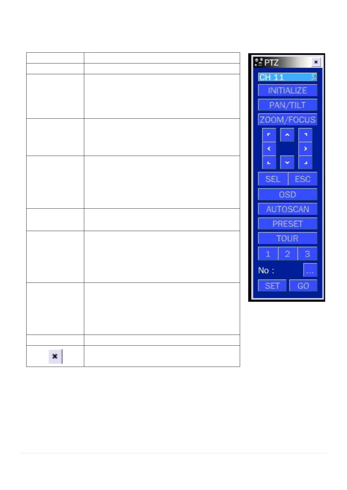 Table 5.1.3. Menu Items in PTZ Control Window