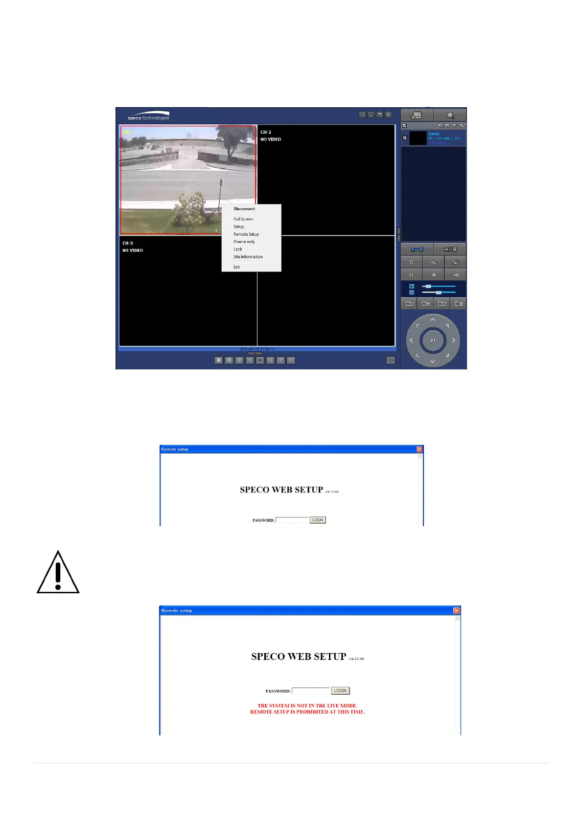 Enter the password of the DVR when prompted. (NOTE: The default password is 1111)