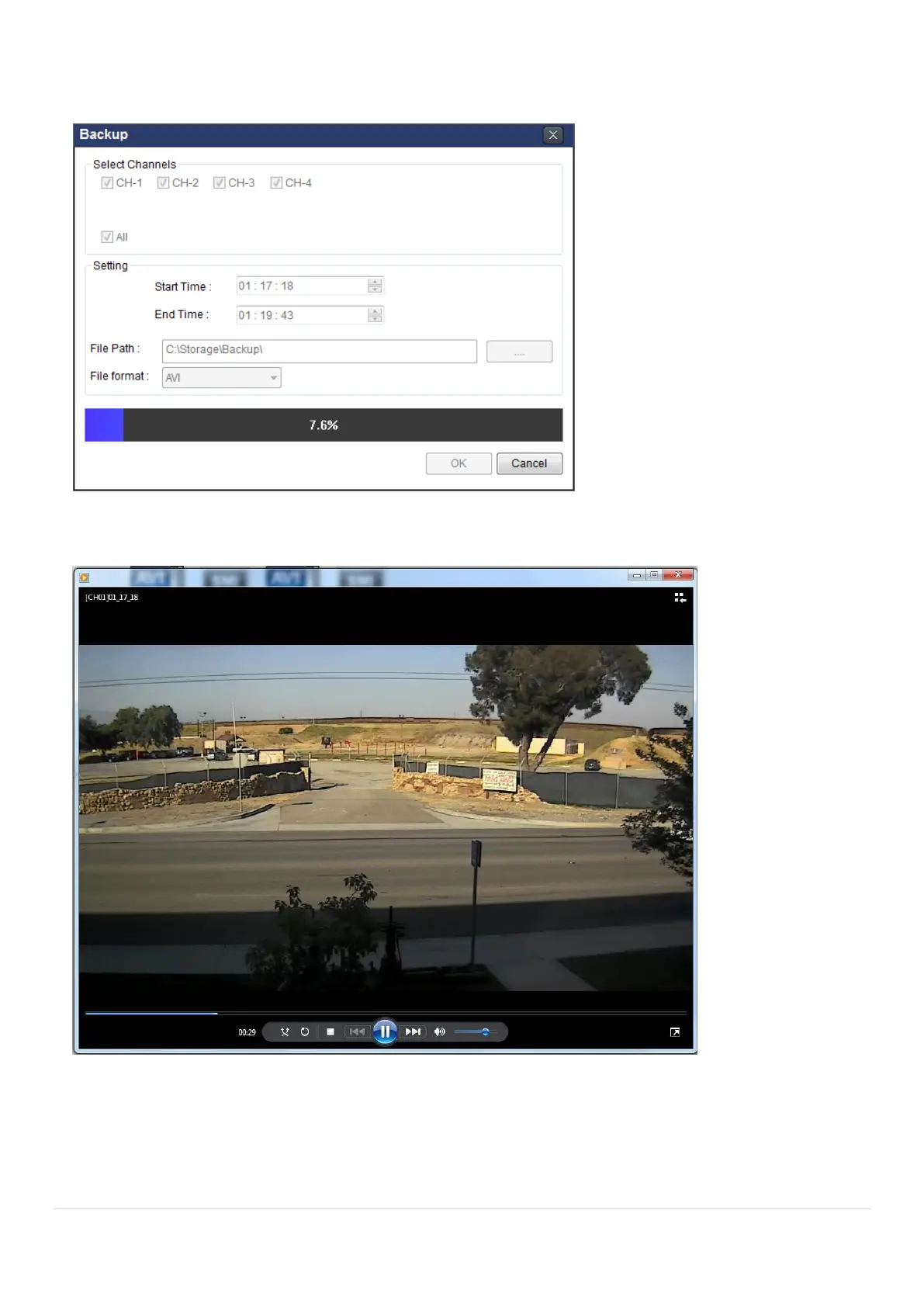 7. AVI video data is recorded as set in AVI Backup window. AVI format video can be played back by using
