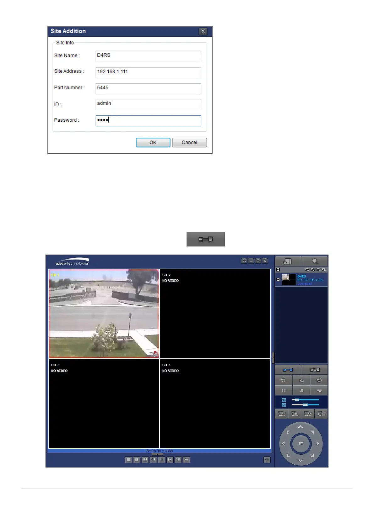 4. Input Site Name, Site Address (IP address), Port Number, and Password on the connect window.