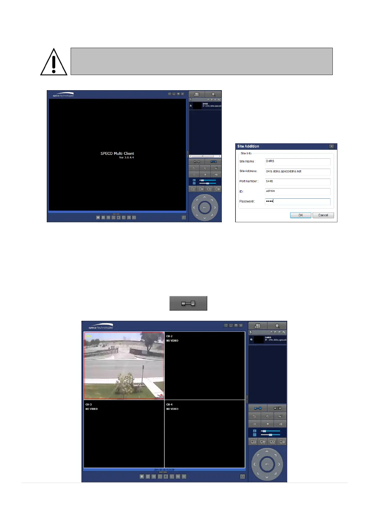 7. Input Site Name, Site Address (IP address), Port No., and Password on the connect window.