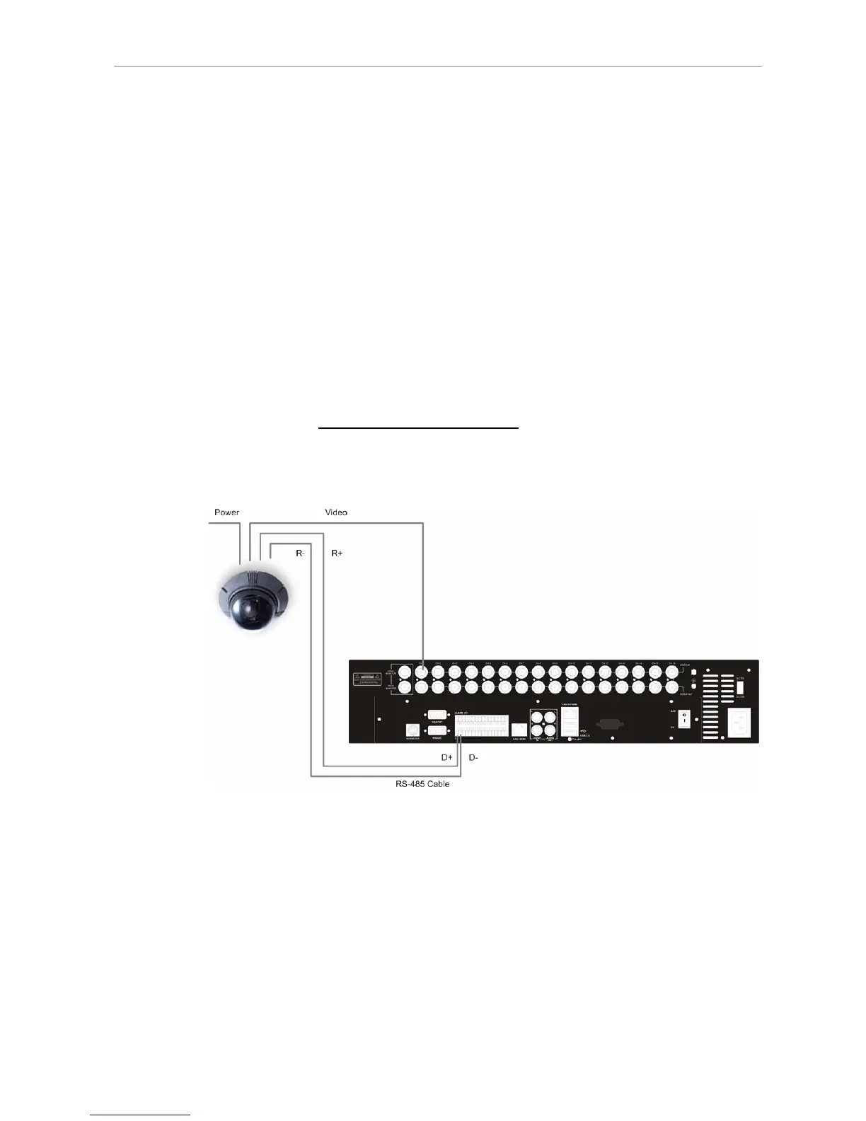 camera to the D+, D- terminals on the RS-485 port respectively. Refer to