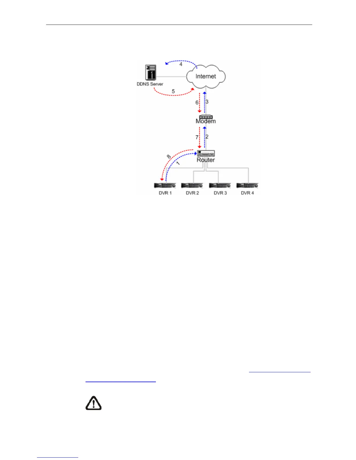 DVR 1 connects to the WAN or the Internet through the router, and modem to