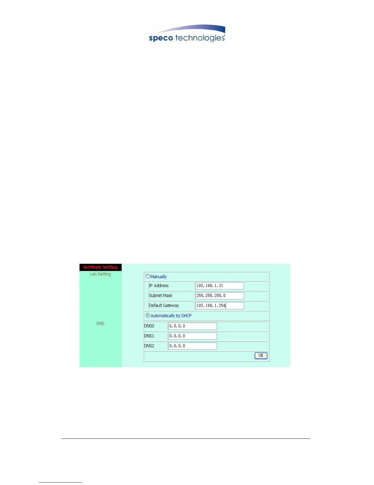 2. Enter “IP Address”, “Subnet mask”, and ”DNS”.