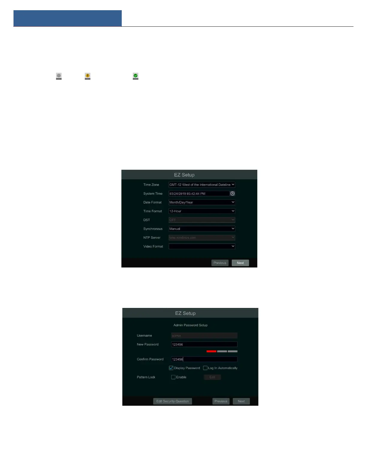 You must configure the wizard if you start the DVR for the first time (or click “Skip” to cancel the EZ Setup next time).