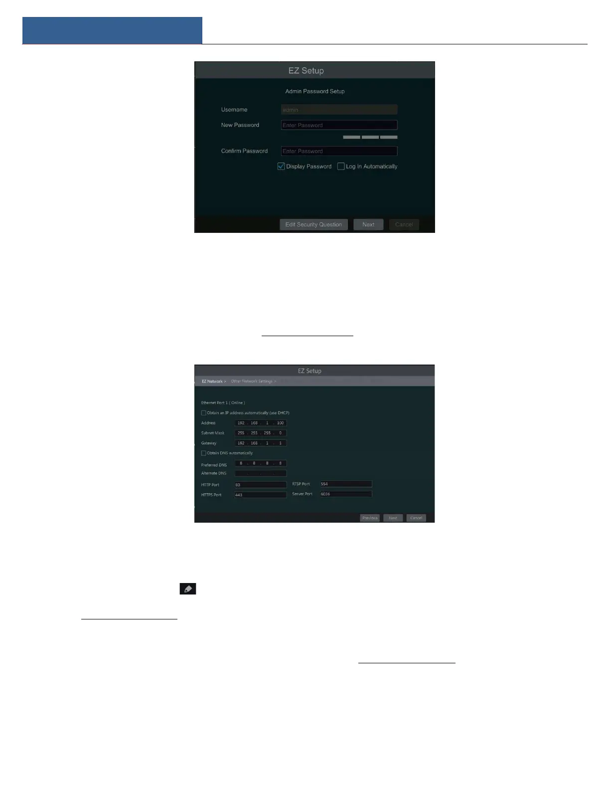 Enter the HTTP port, RTSP port and Server port (please see 12.1.2 Port Configuration for details). Click “Next” to continue.