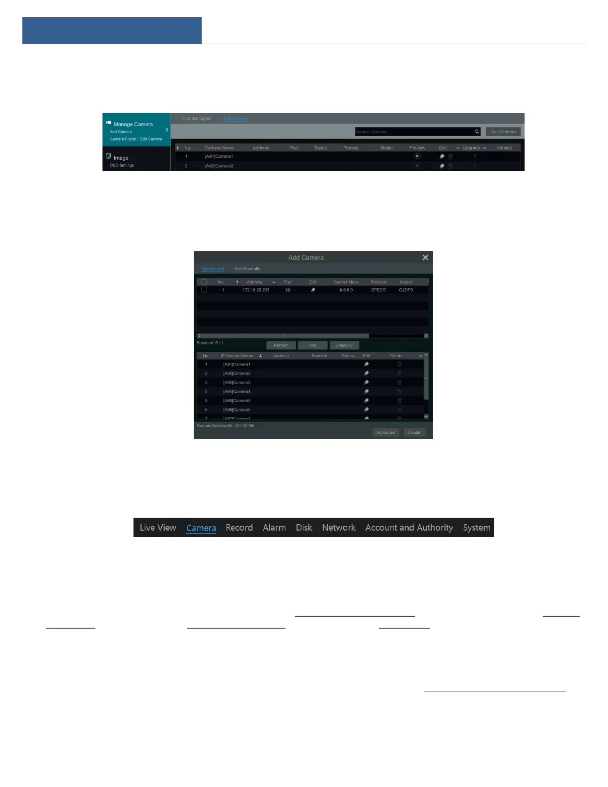 For instance, click “Add Camera” to pop up the window as shown below.