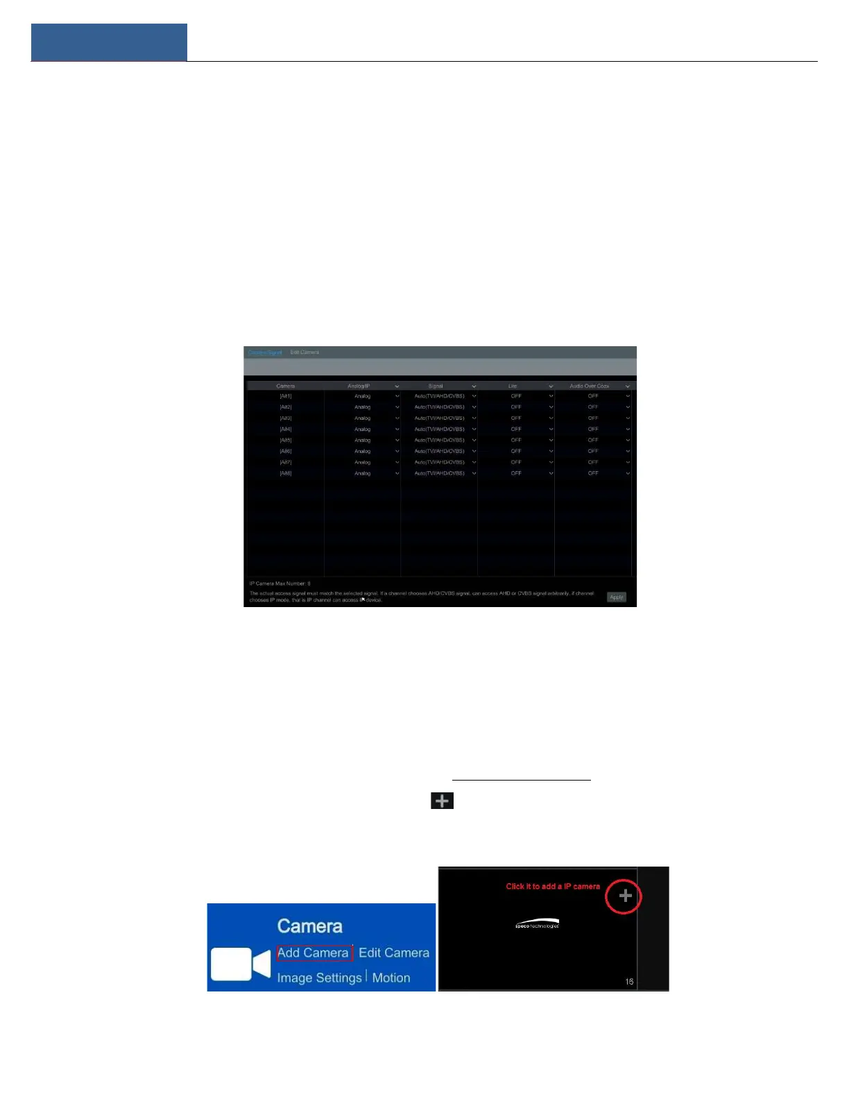 Audio over Coax: if your analog camera supports coaxial audio transmission, you can select “ON”. For now, coaxial audio transmission is only