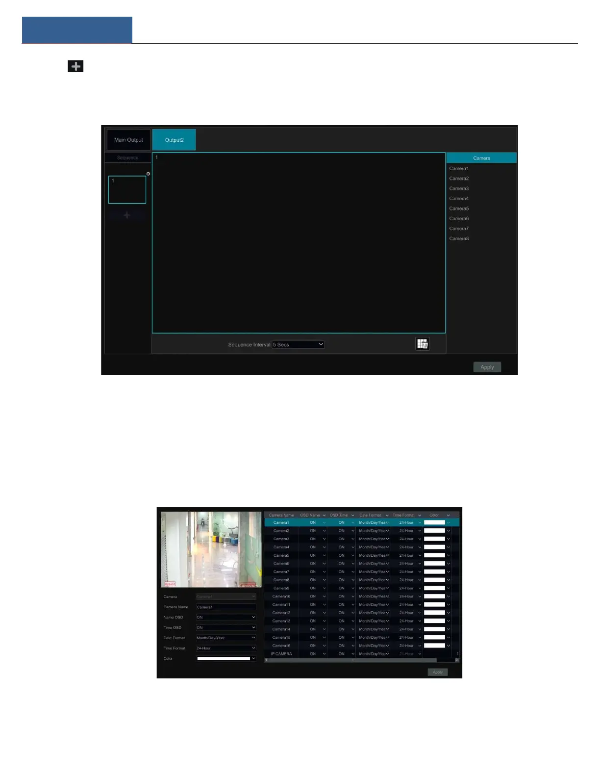 and time OSDs directly in the image view area to change the OSDs’ display position) and select the date, time format and color. Click “Apply” to