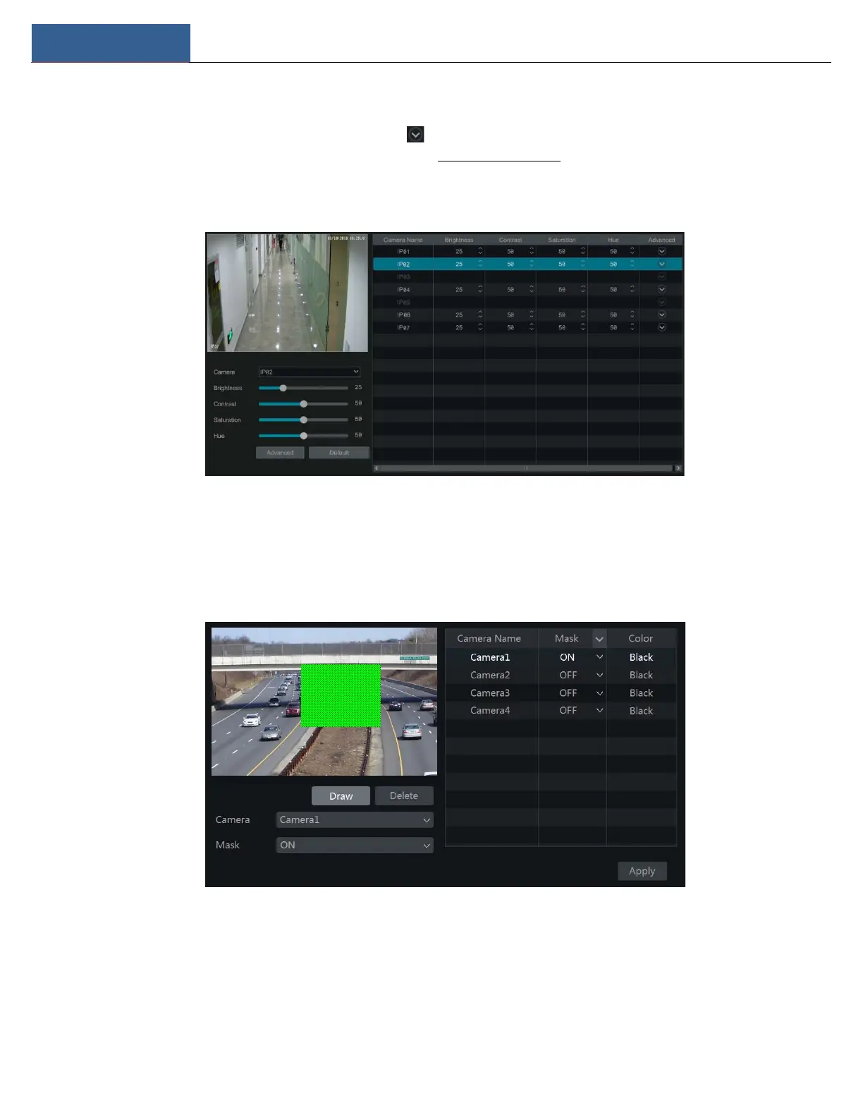 Some areas of the image can be masked for privacy. Up to four mask areas can be set for each camera. Click