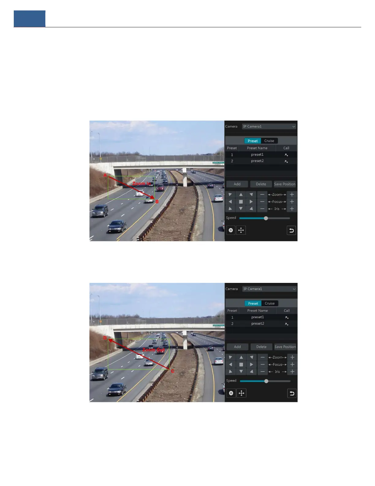 Press and hold the left button of the mouse on any area of the camera image to zoom in on the image; press and hold the right button to zoom out