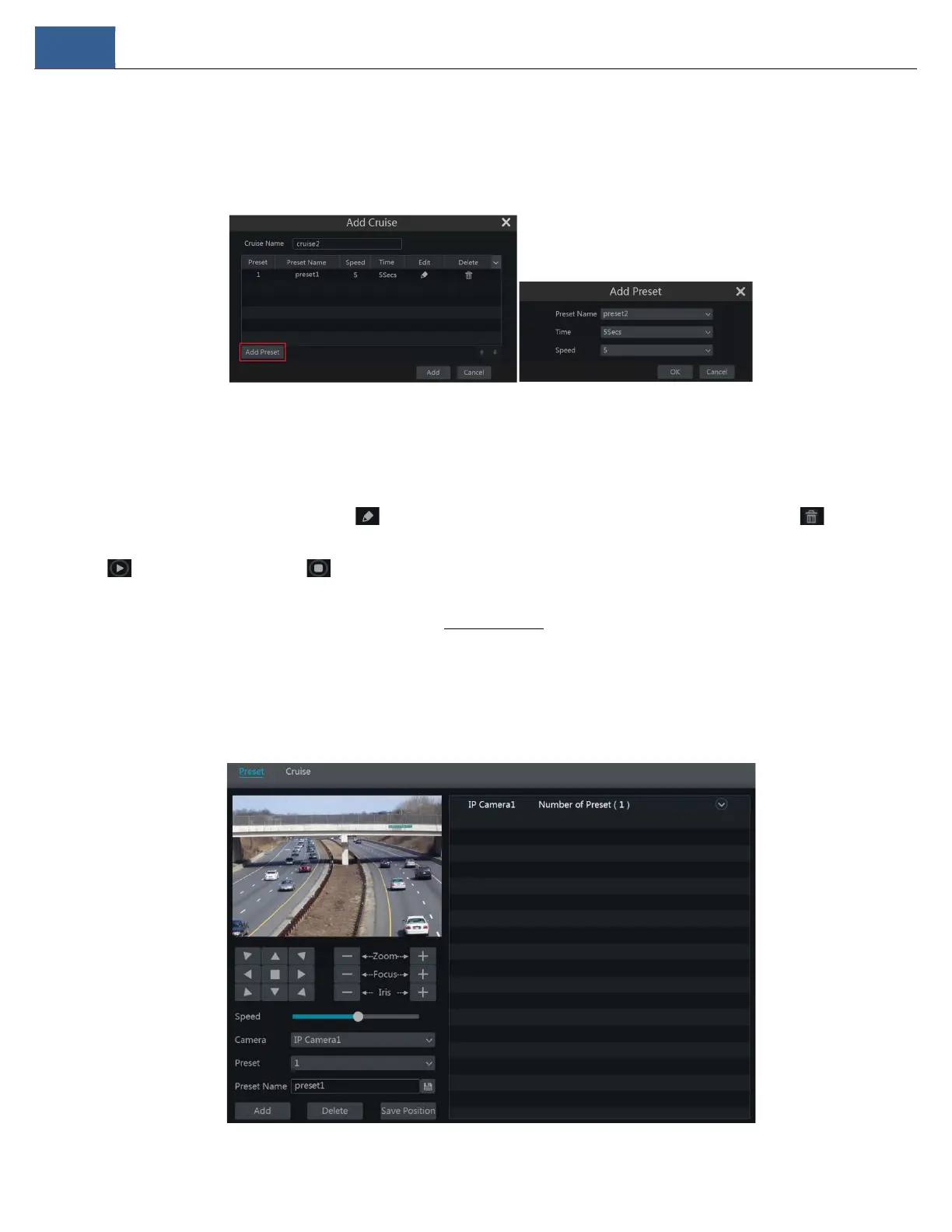 ③ In the “Add Cruise” window, you can click to reselect the preset, then change the preset time and speed. Click to delete the