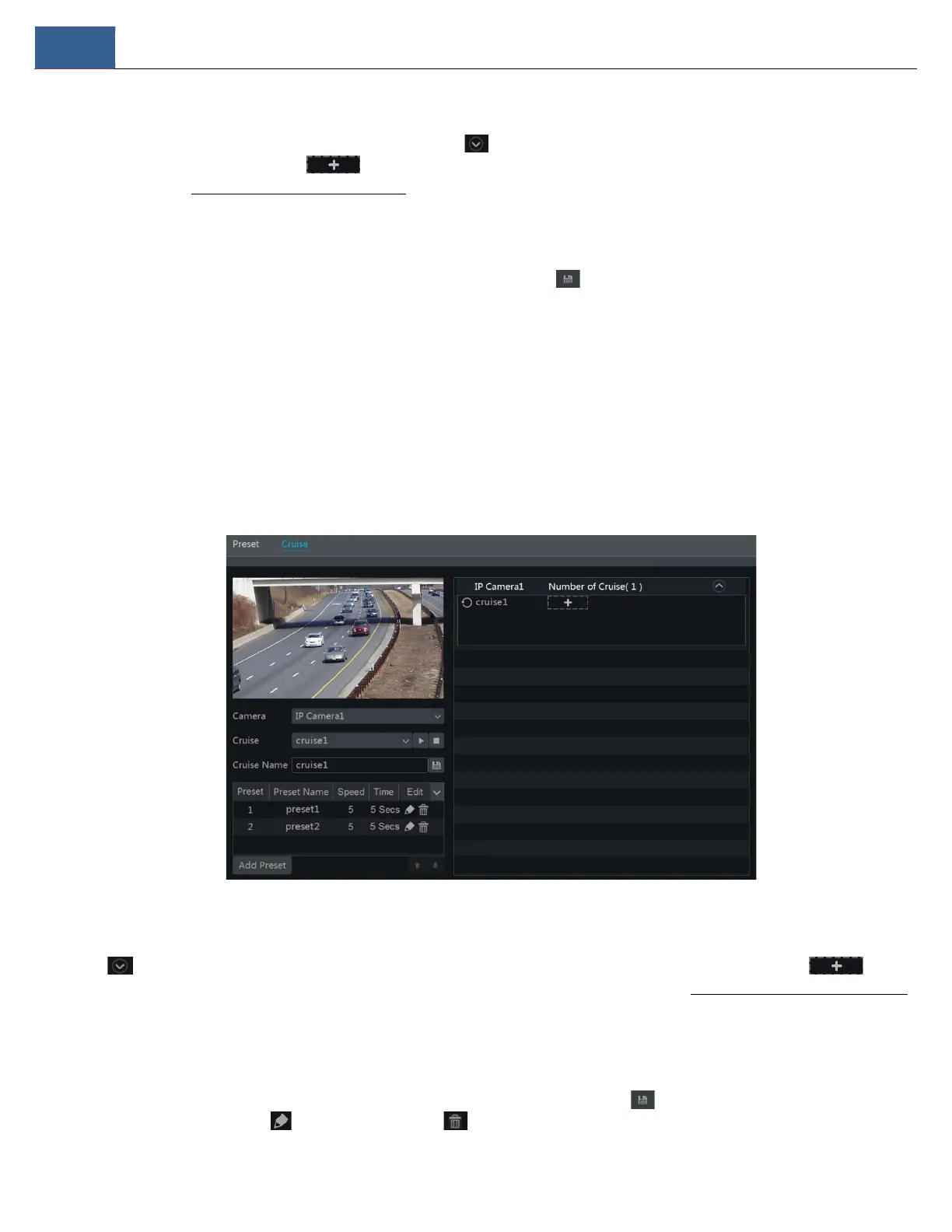 to add preset to the cruise. Click to edit the preset. Click to delete the preset from the cruise. Click one preset in the preset list and