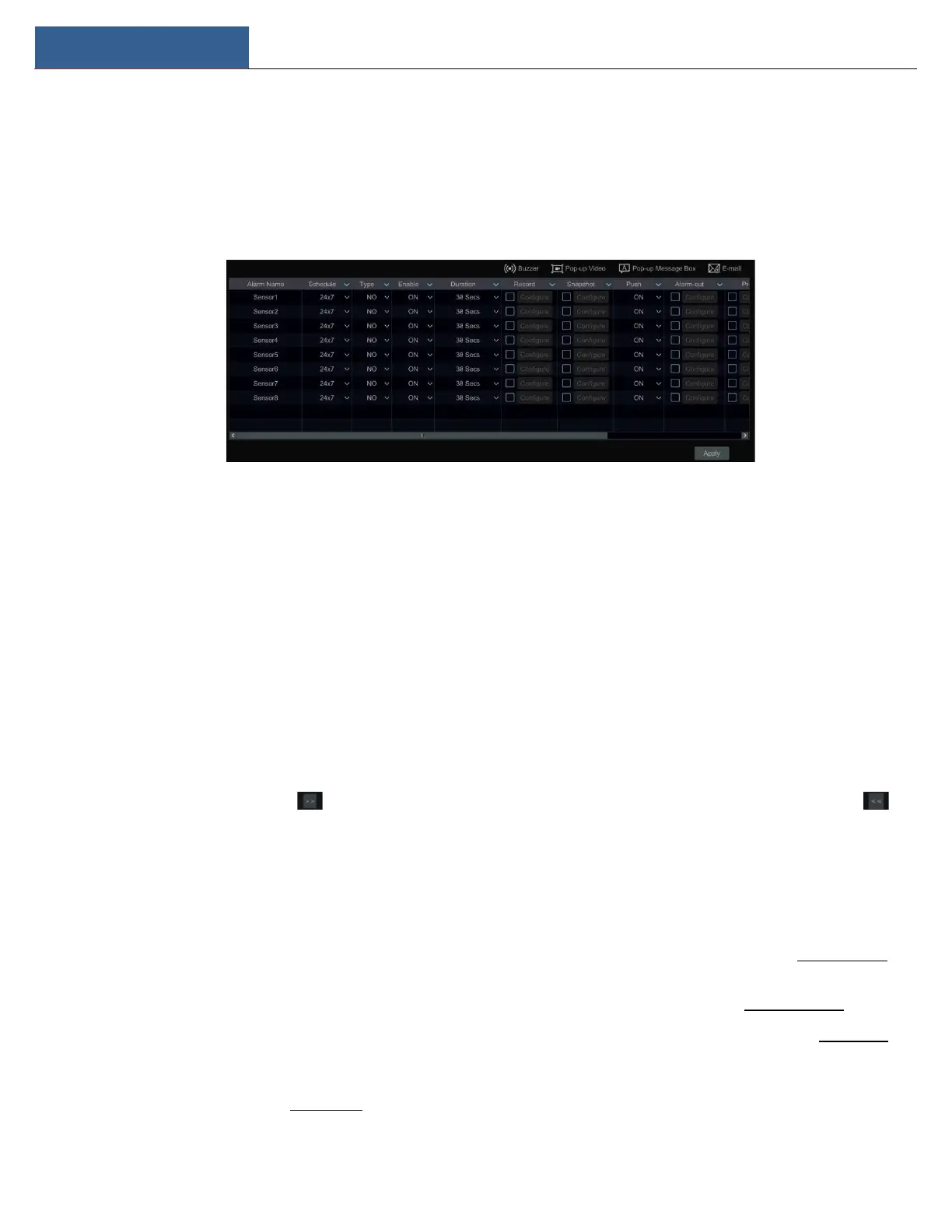 Pop-up Video: After camera setup, the system will pop up the corresponding video automatically when the sensor alarm is triggered. To set the