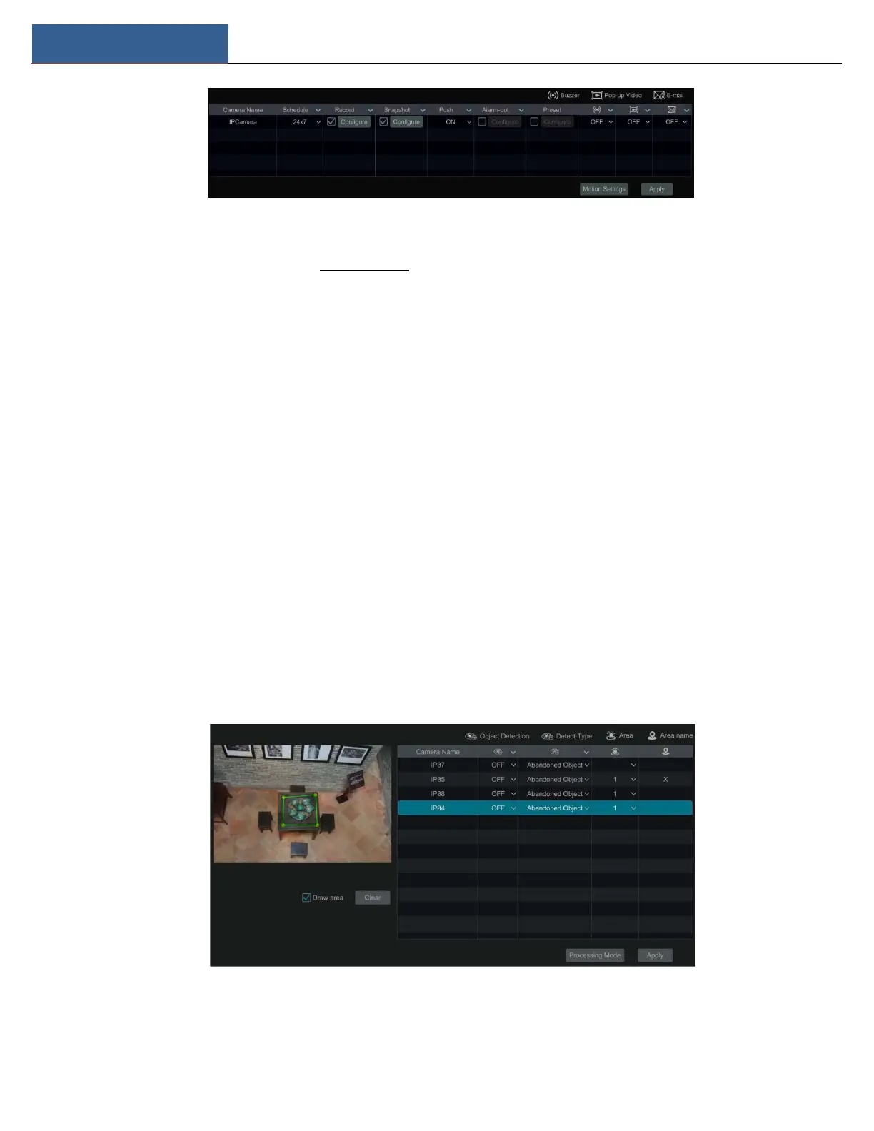 ① Click StartSettingsCameraIntelligent AnalyticsObject Abandoned/Missing to go to the following interface.