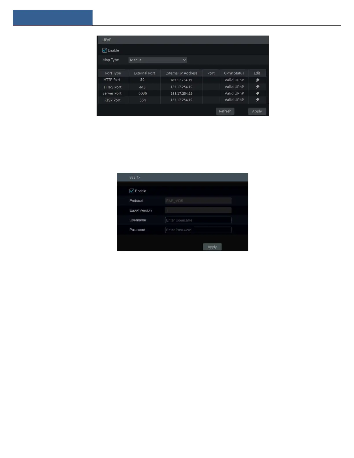 If it is enabled, the DVR data can be protected. When the DVR is connected to the network protected by the IEEE 802.1X, user authentication is