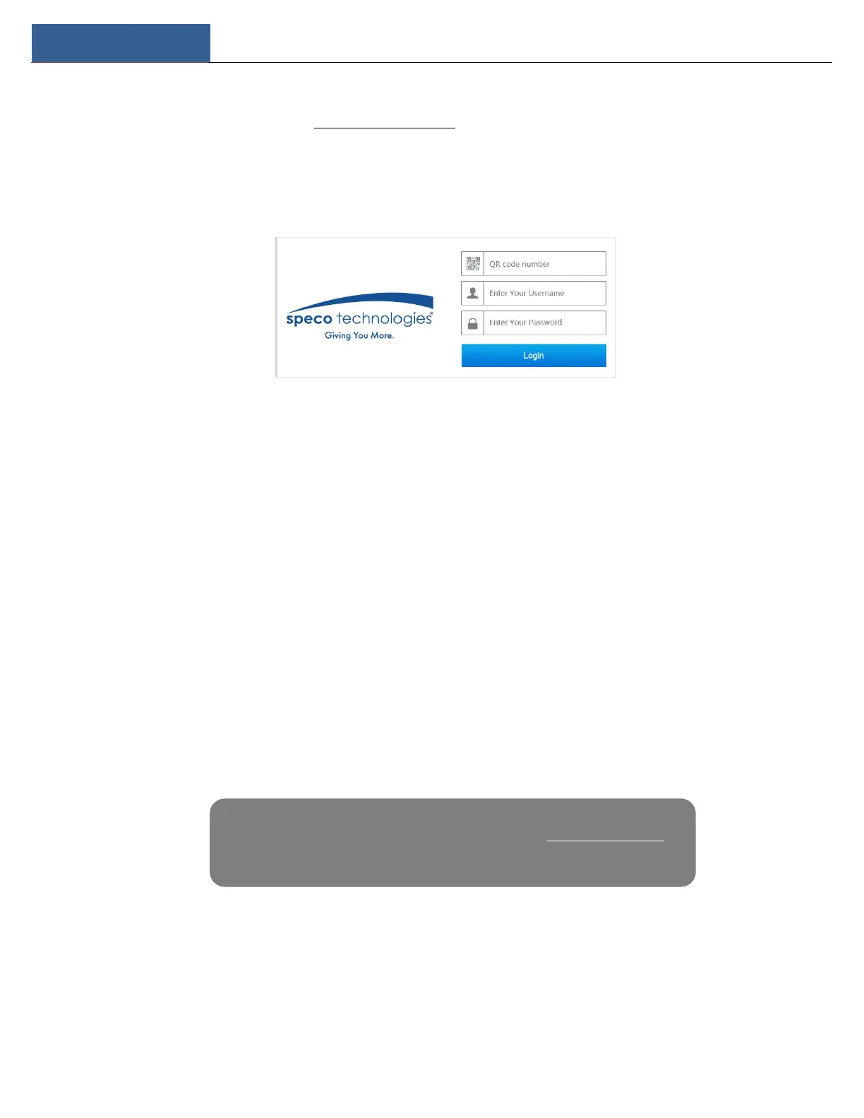 make note of the QR code number under the QR code. Via Internet Explorer, go to connect.specotech.cloud, input the QR code number, your