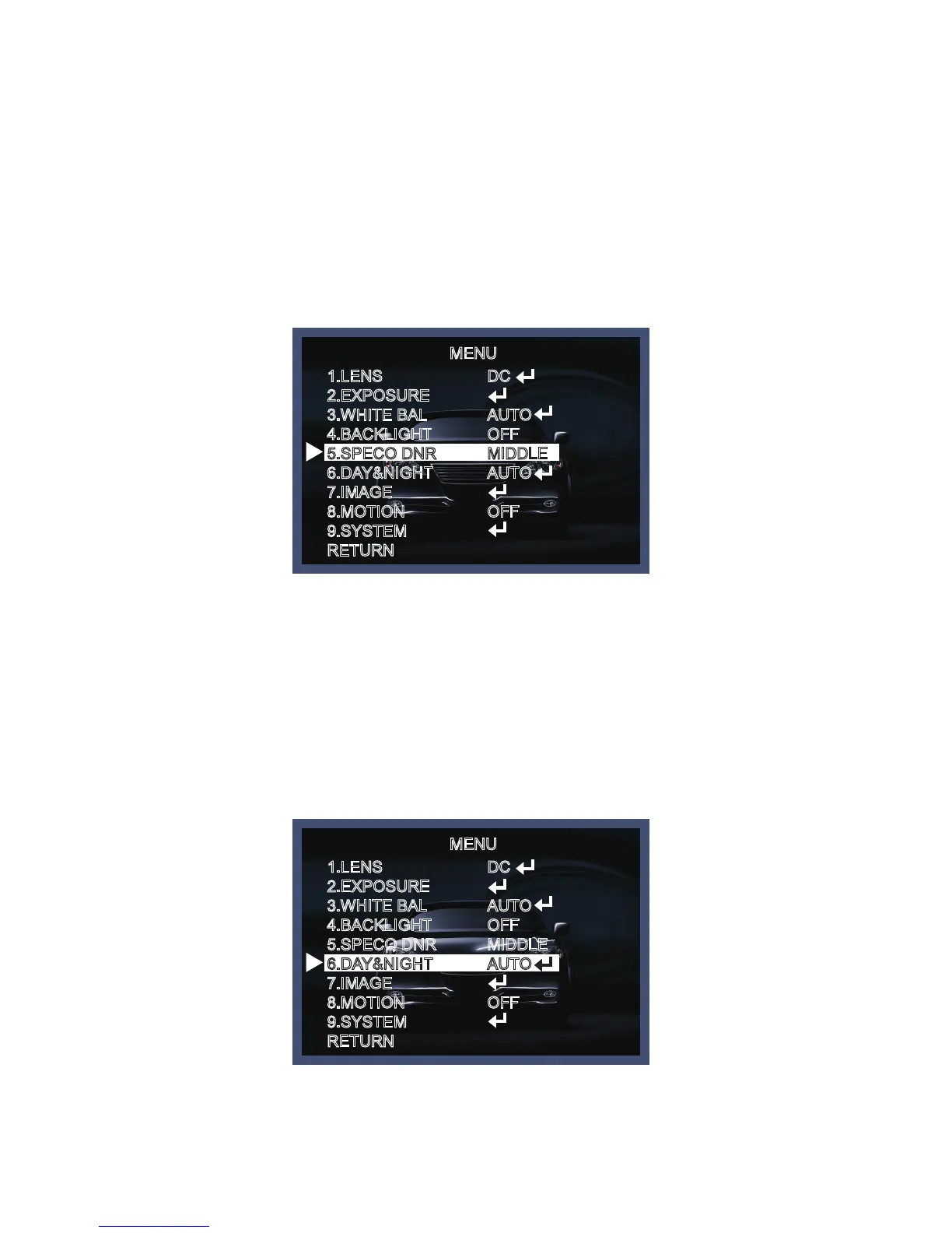 1. Select Day&Night using the Up or Down button on the Set Up menu screen.