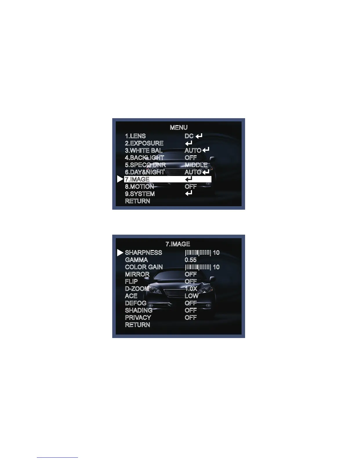 - GAMMA [0.45 ~ 0.65] : Changes the gamma curve of the camera.