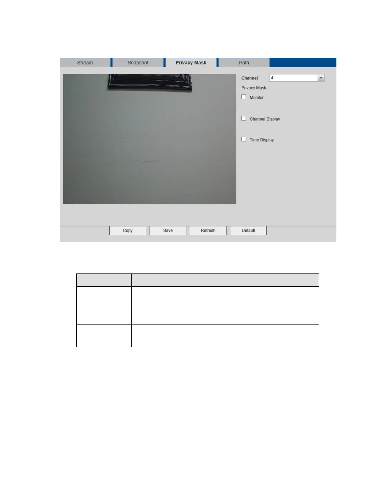 A maximum of 4 privacy mask zones are supported.