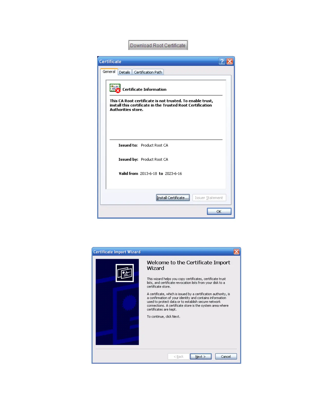 Click on Install certificate to go to the certificate wizard. See Figure 5-36.