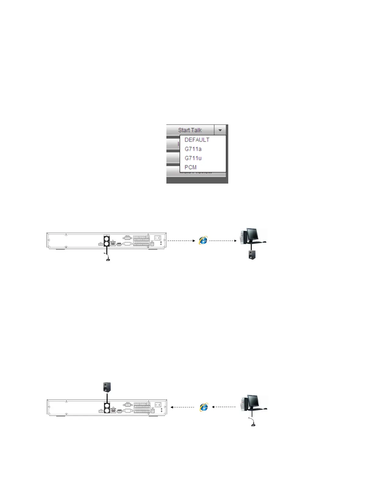Connect a microphone to the input port located on the rear panel of the NVR. Then connect a speaker to the