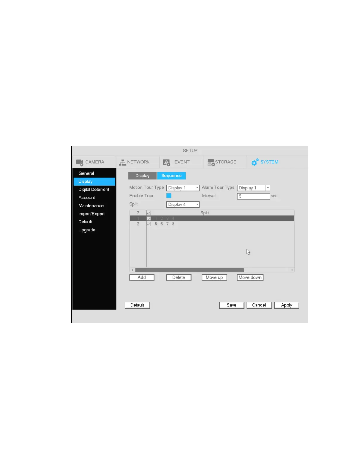 Alarm tour type: Single channel and 8-channel views are supported. For a channel to be displayed under