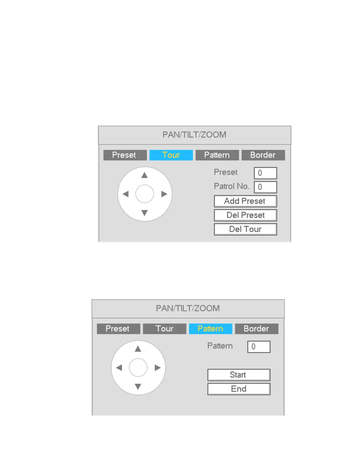 Click Begin button to start recording the directions for the pattern. You can also use the full PTZ controls