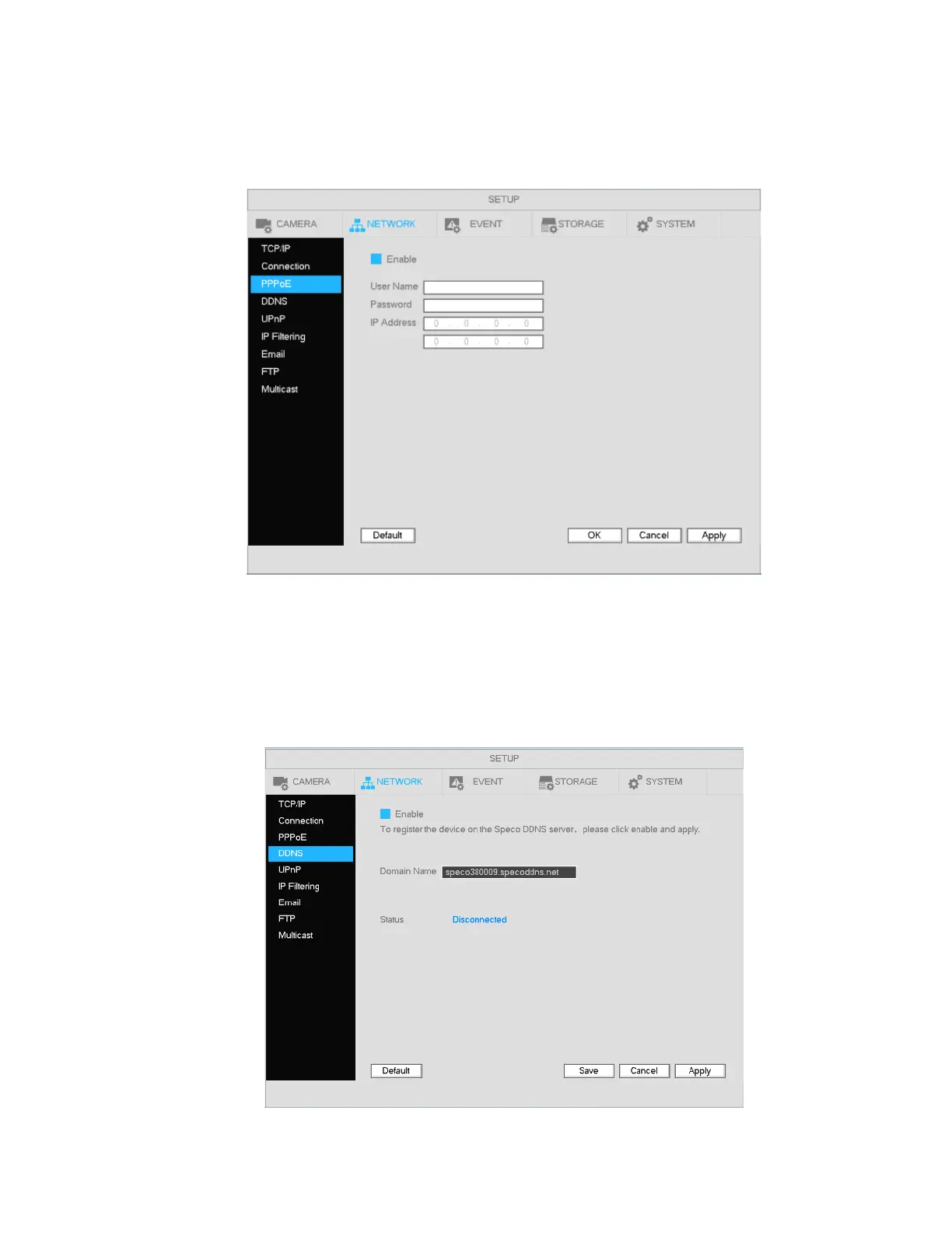 Check the Enable box and click on Apply. The DDNS address will be “specoXXXXXX.specoddns.net” with