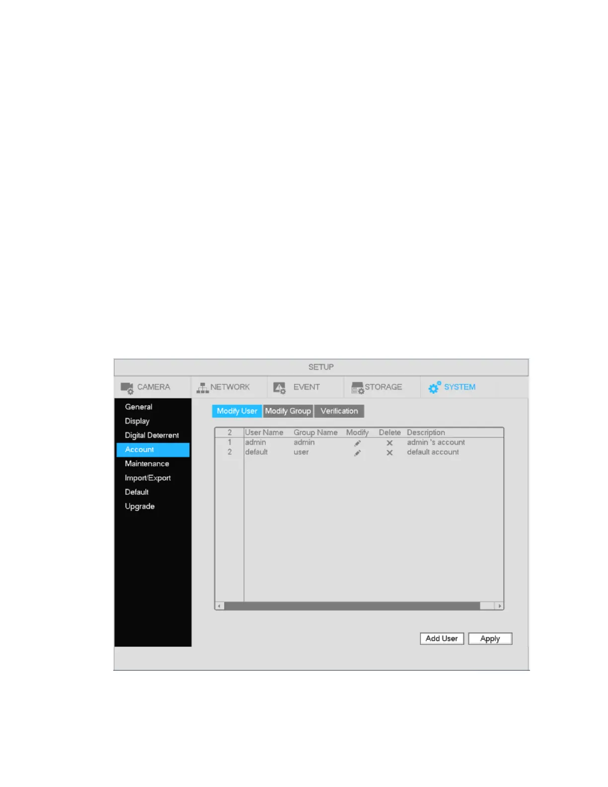 logged in, the hidden user “default” automatically logs in. Some rights such as monitor can be set for this