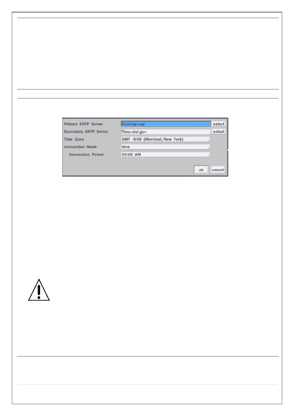 CONNECTON MODE: Select the NTP time-server connection mode from TIME,