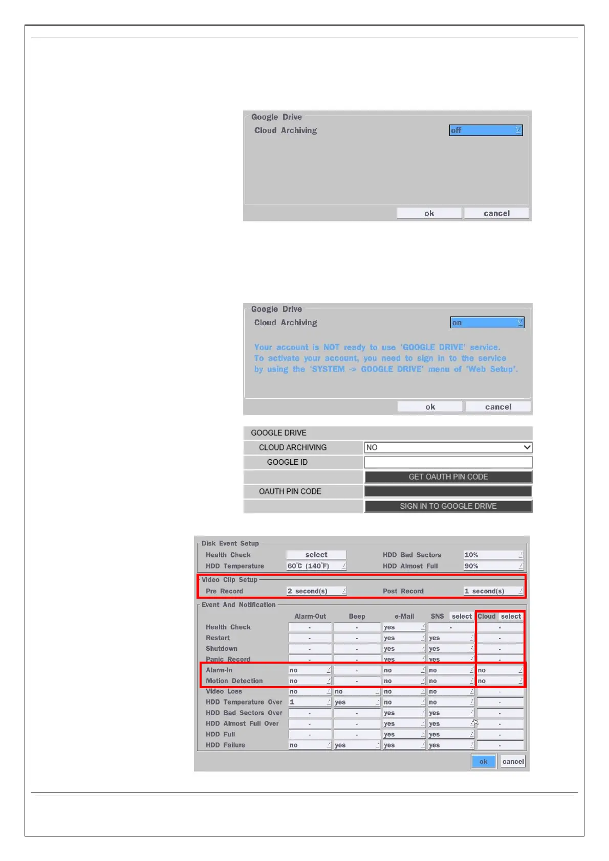 1-2) Select Google Drive Cloud Archiving to ‘Yes’