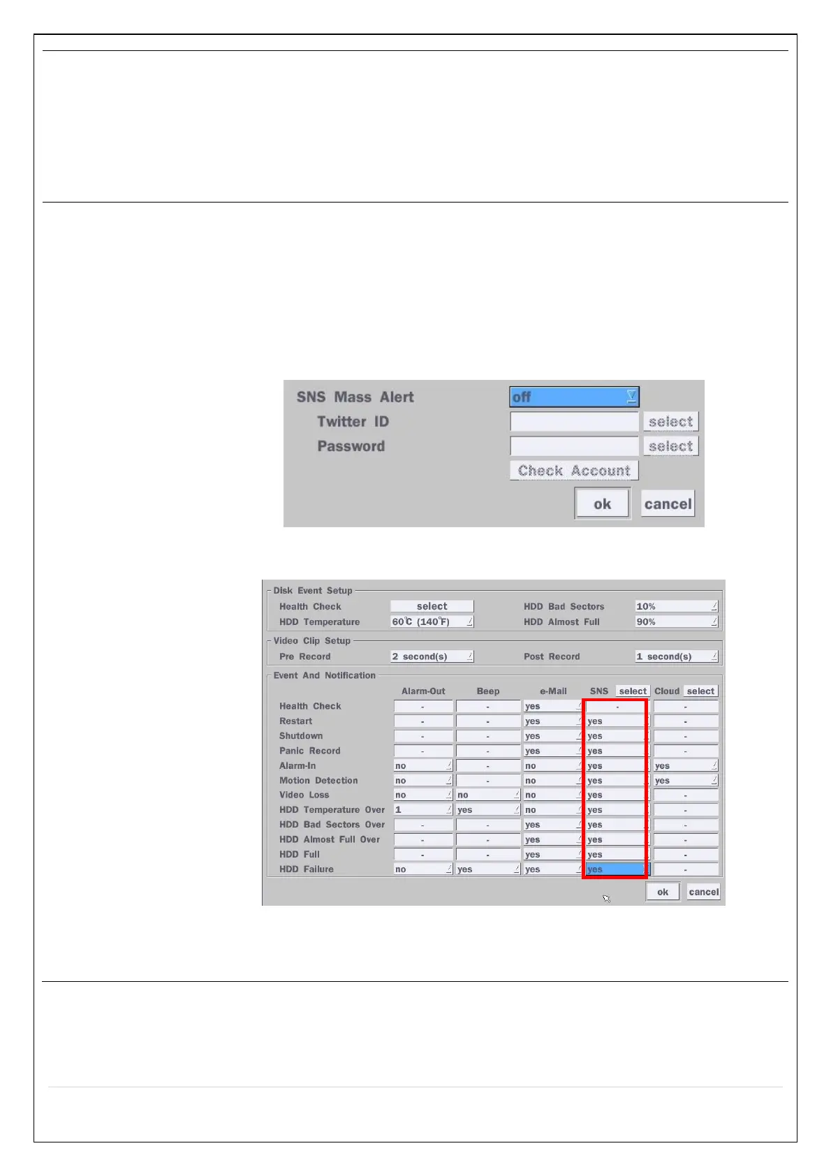 1) How to set (Setup – System – System Event Notification – SNS)