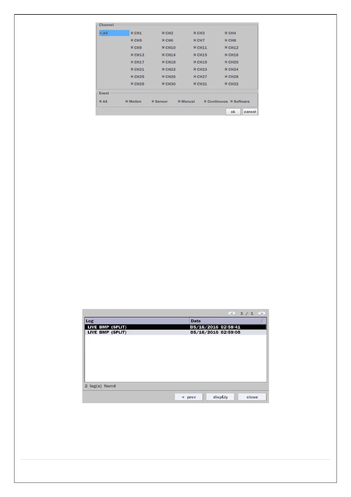 Figure 5.3.4.2. Event Search Screen – Channel & Event Select