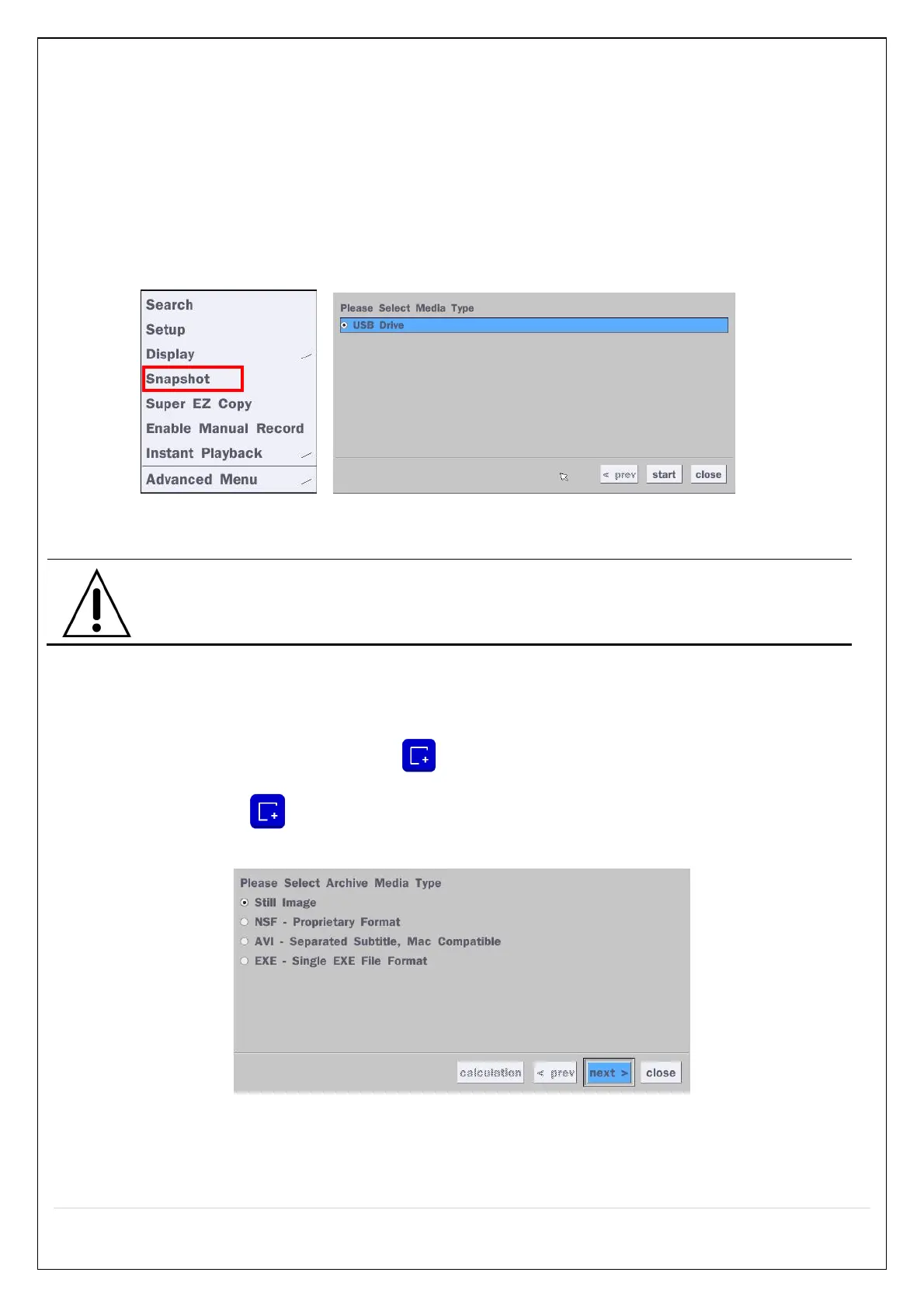 2. When you press Snapshot button on Quick operation window, the media selection window screen will
