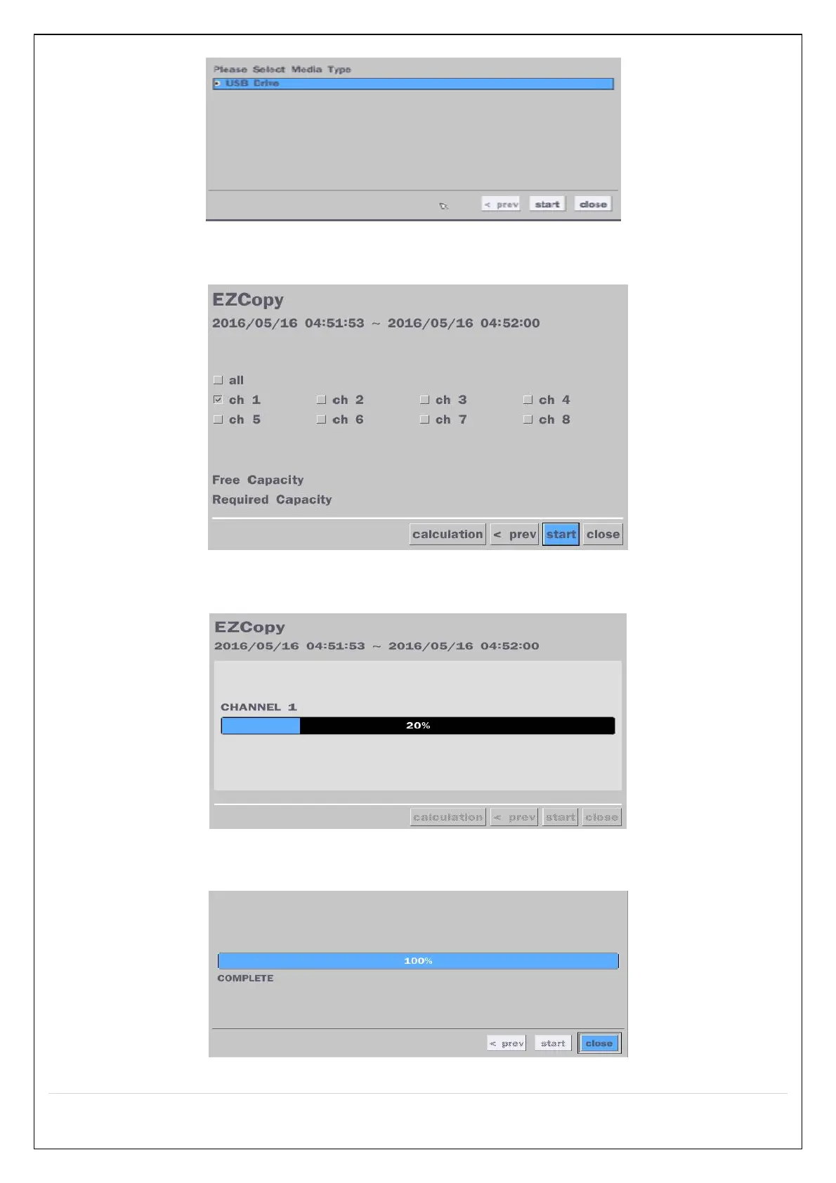 3. Once you select the channel and duration, the system will start to archive the data to the USB drive.