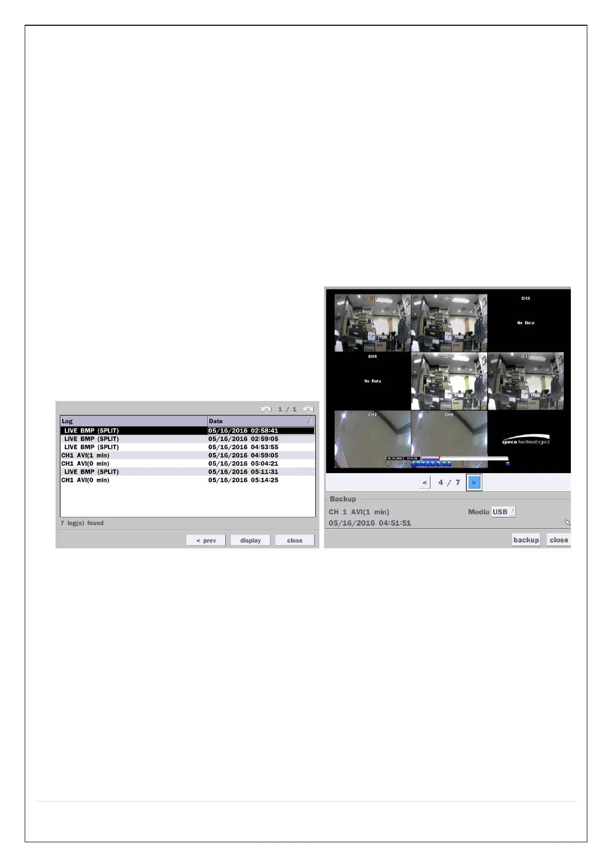5. Once the desired event has been selected, press the “display” button to view the still image or the first