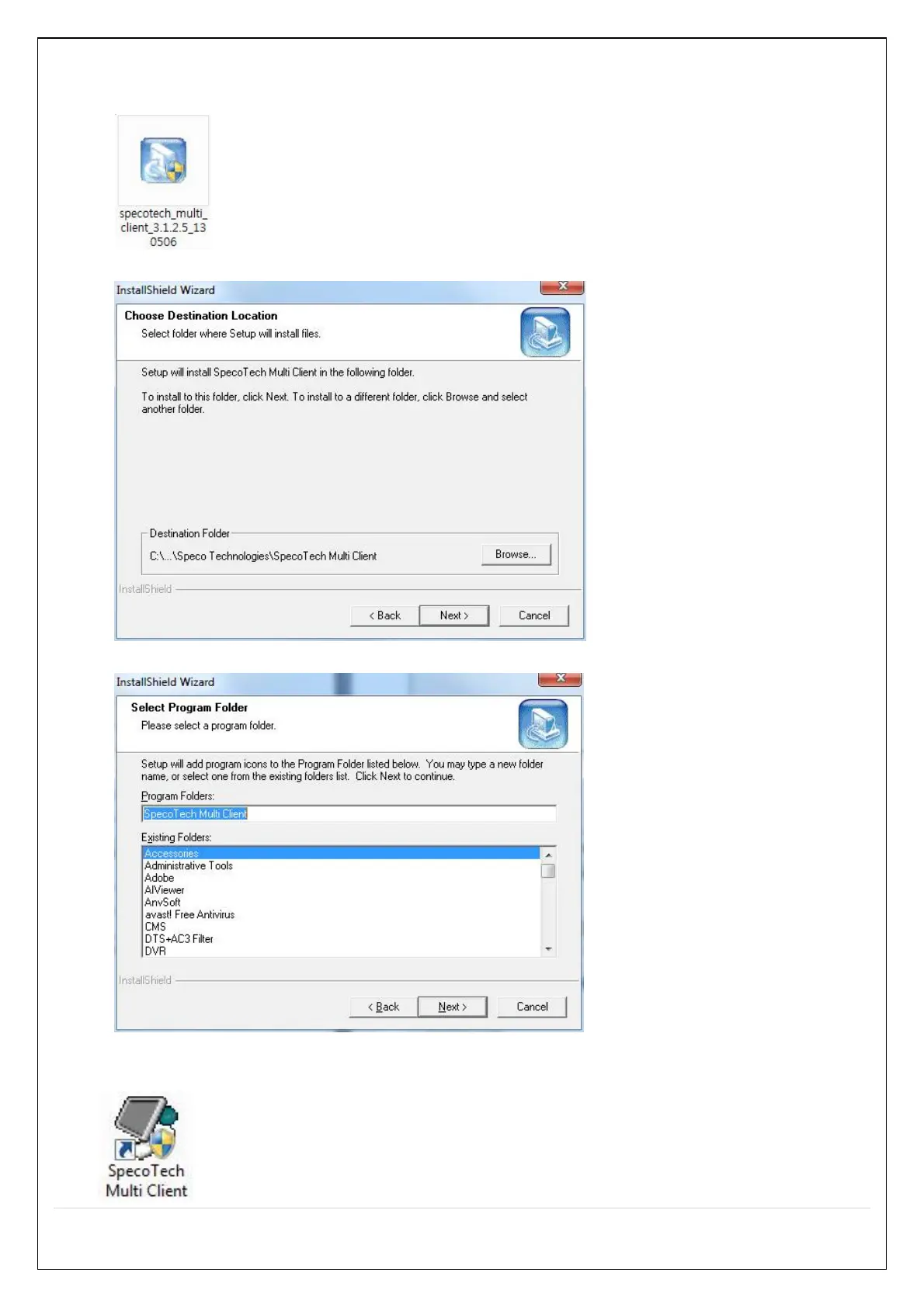 1. Insert the provided CD in the CD drive and double-click “SpecoTech Multi Client (XXXX).exe”
