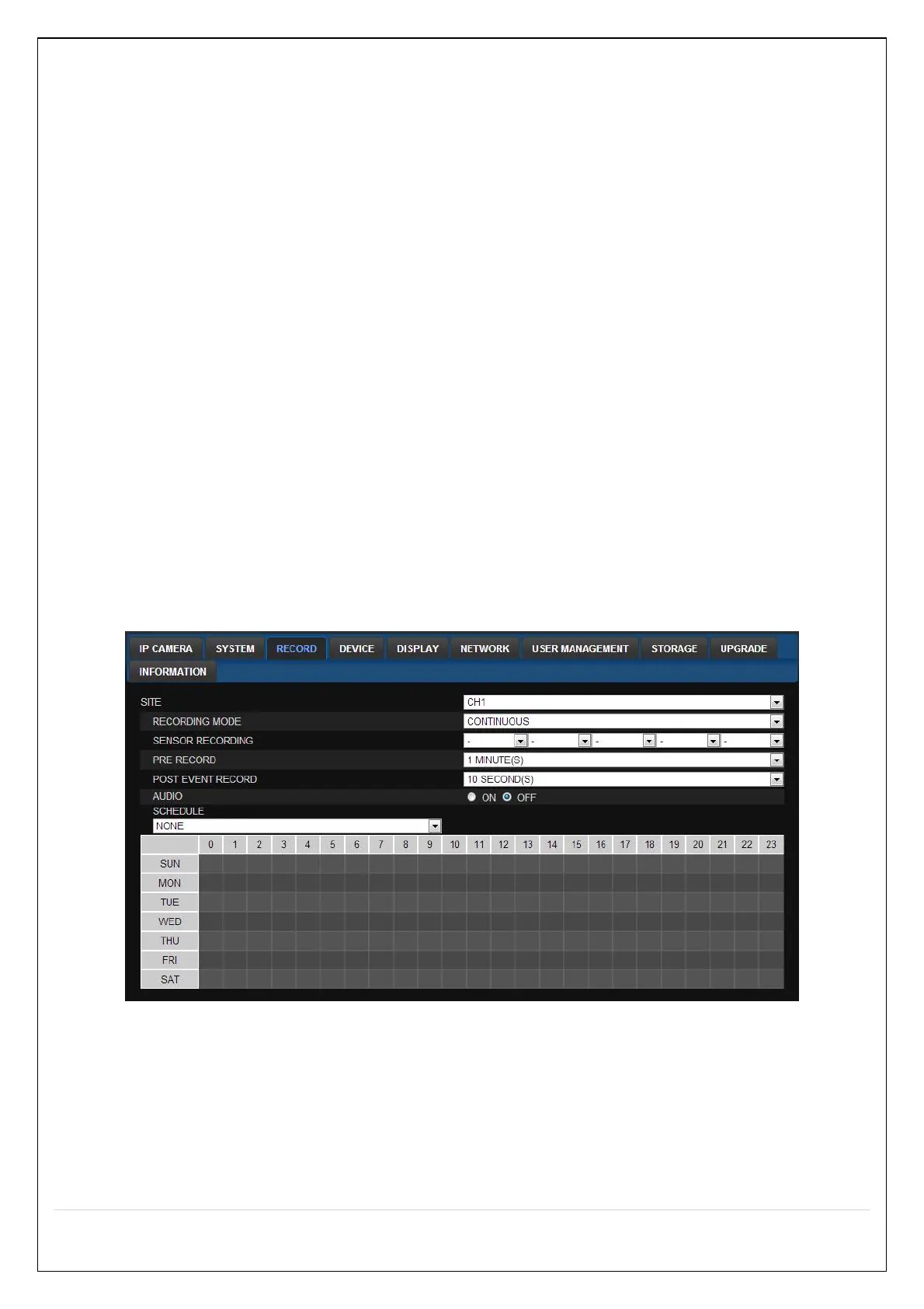 o RECORDING MODE: CONTINUOUS, SCHEDULE, MOTION