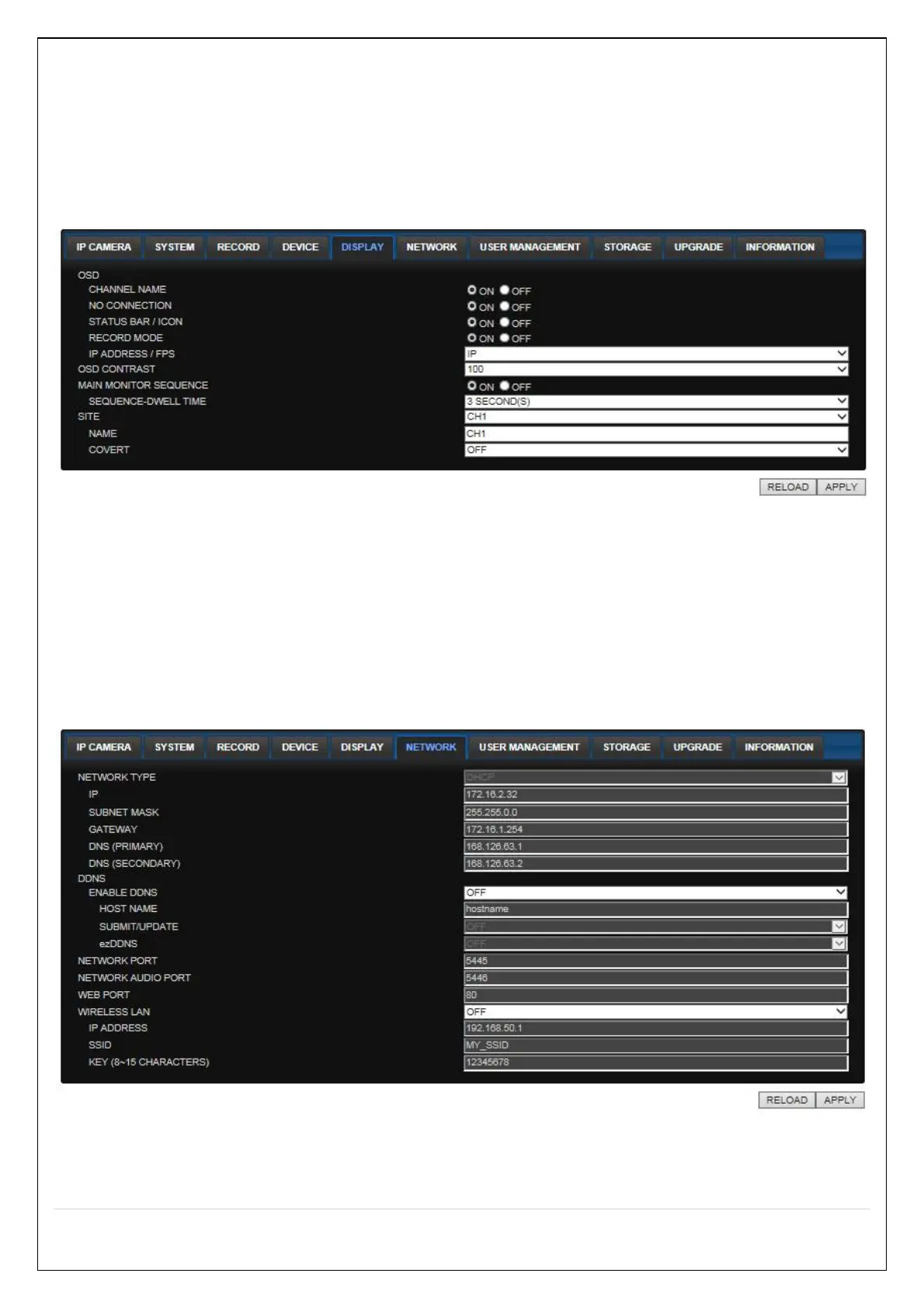 o STATIC: The address setting mode is manual. Input IP, Gateway, Subnet Mask, and DNS IP.