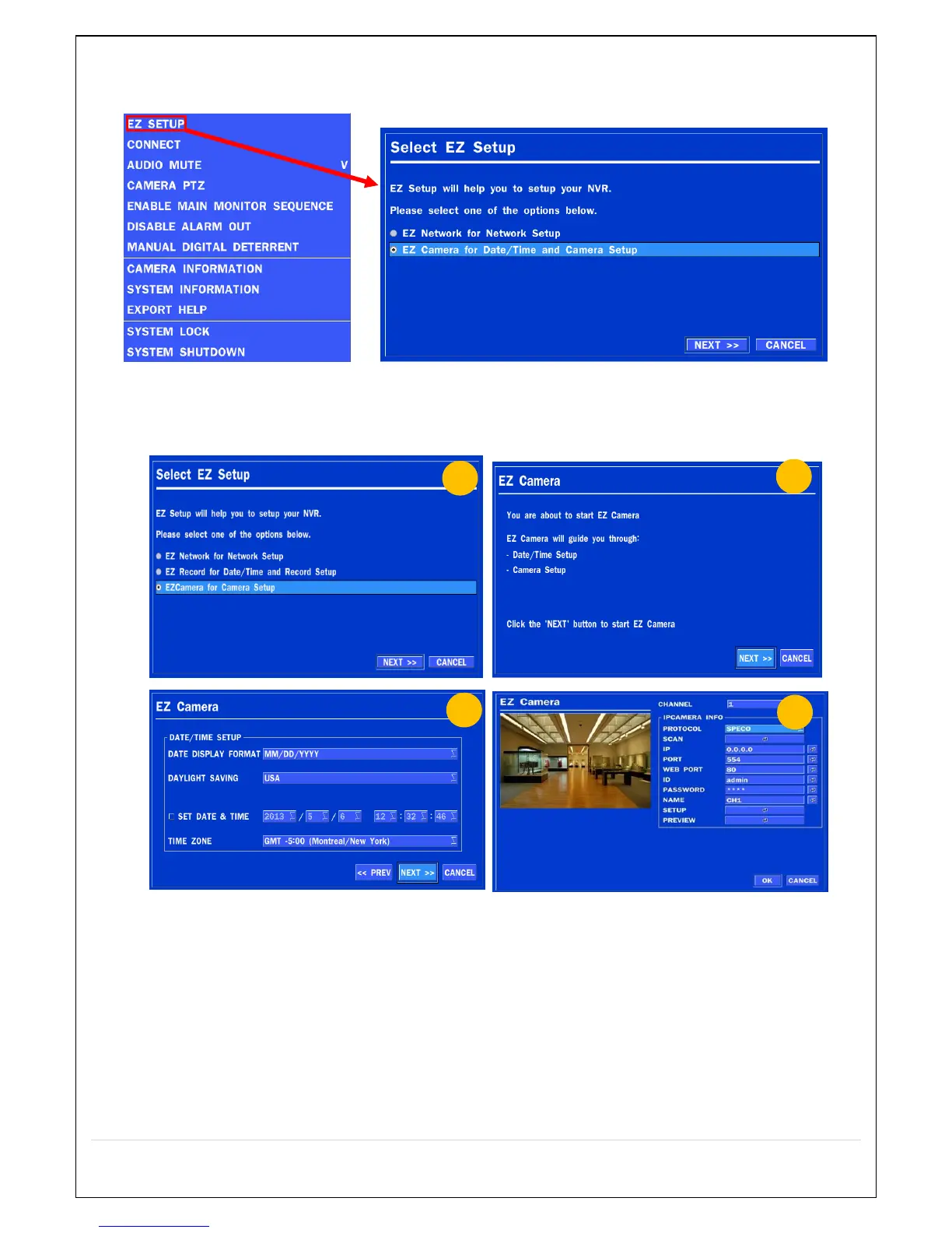 ① Select EZ Camera for Date/Time and Camera Setup, Click NEXT to proceed.